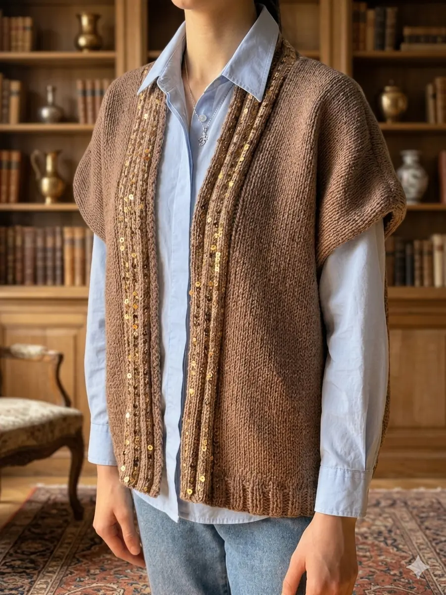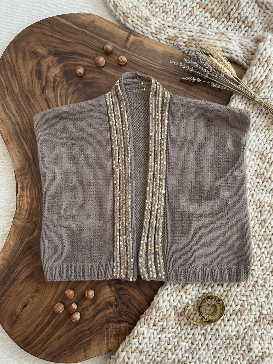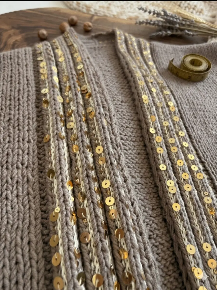 38-40 ölçüdə pambıq və akril qarışıq sapla əsas hissəsi toxunulub.Önlər biserli sapla bəzədilib.