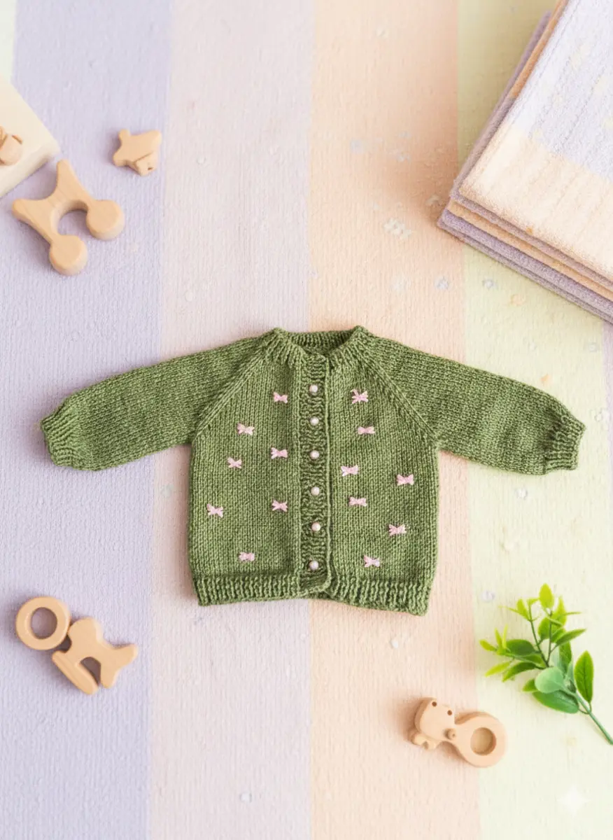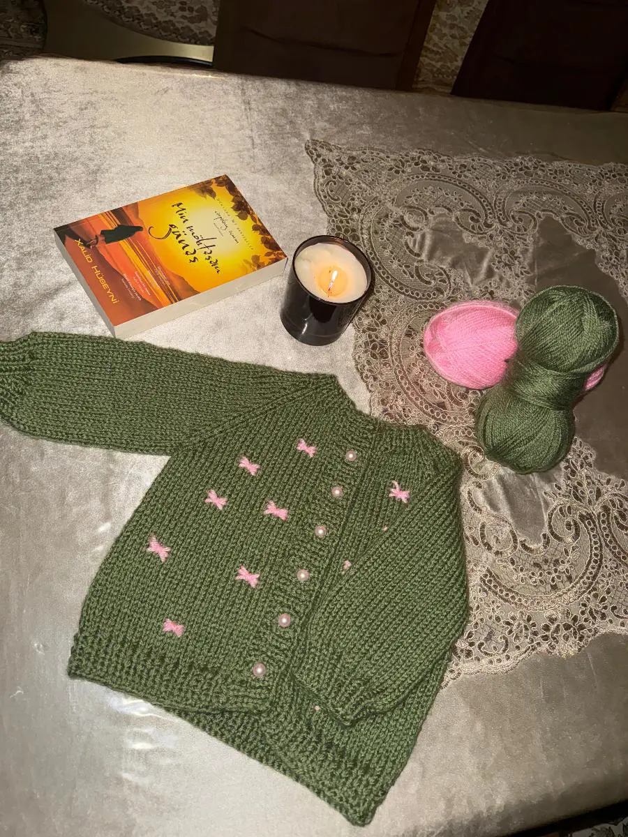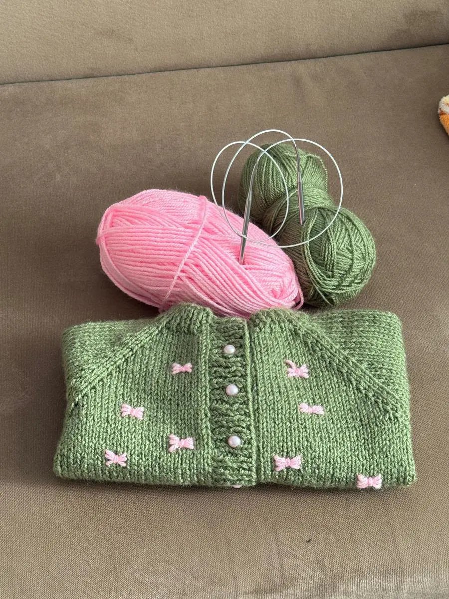 İsti rənglərlə toxunulmuş ,inci düyməli 1,2 yaş körpə qız jileti 😍