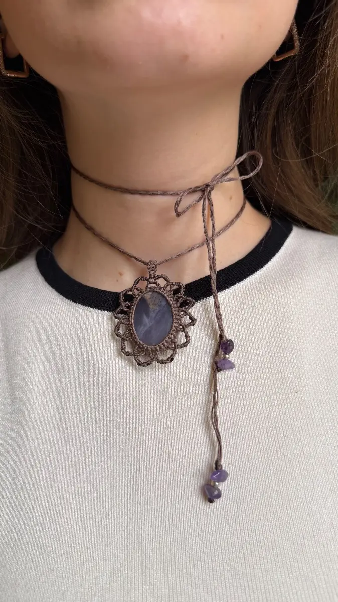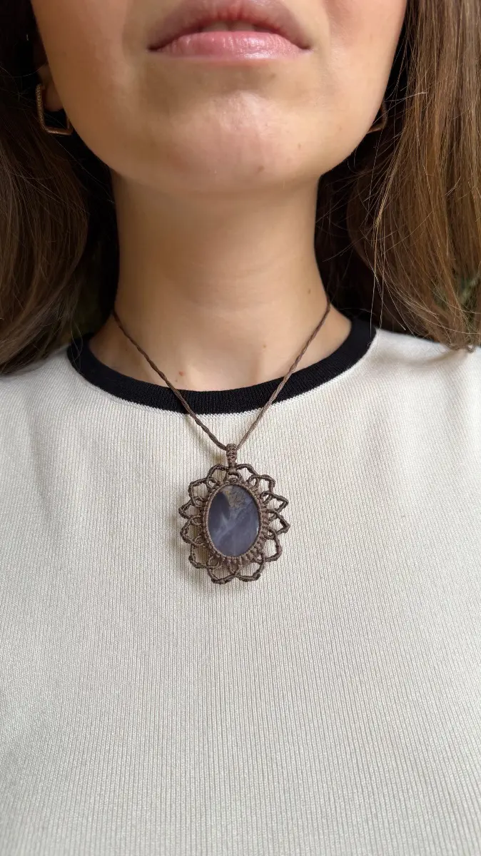 Əl işi mikro-makrame əqiq daşlı boyunbağı🌺✨