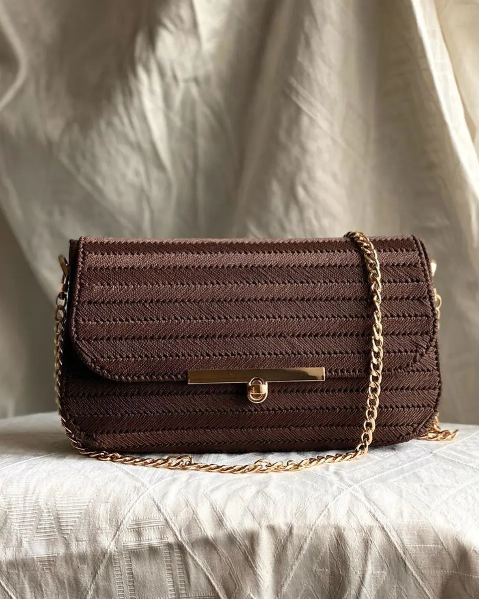 Qəhvəyi rəng,qızılı aksessuarlar ilə orta ölçülü çantamız🤎