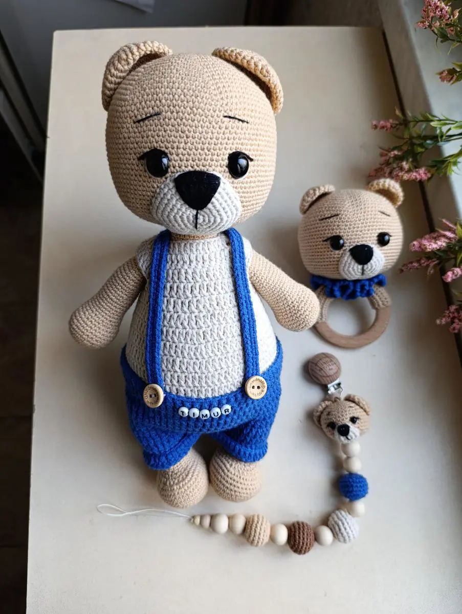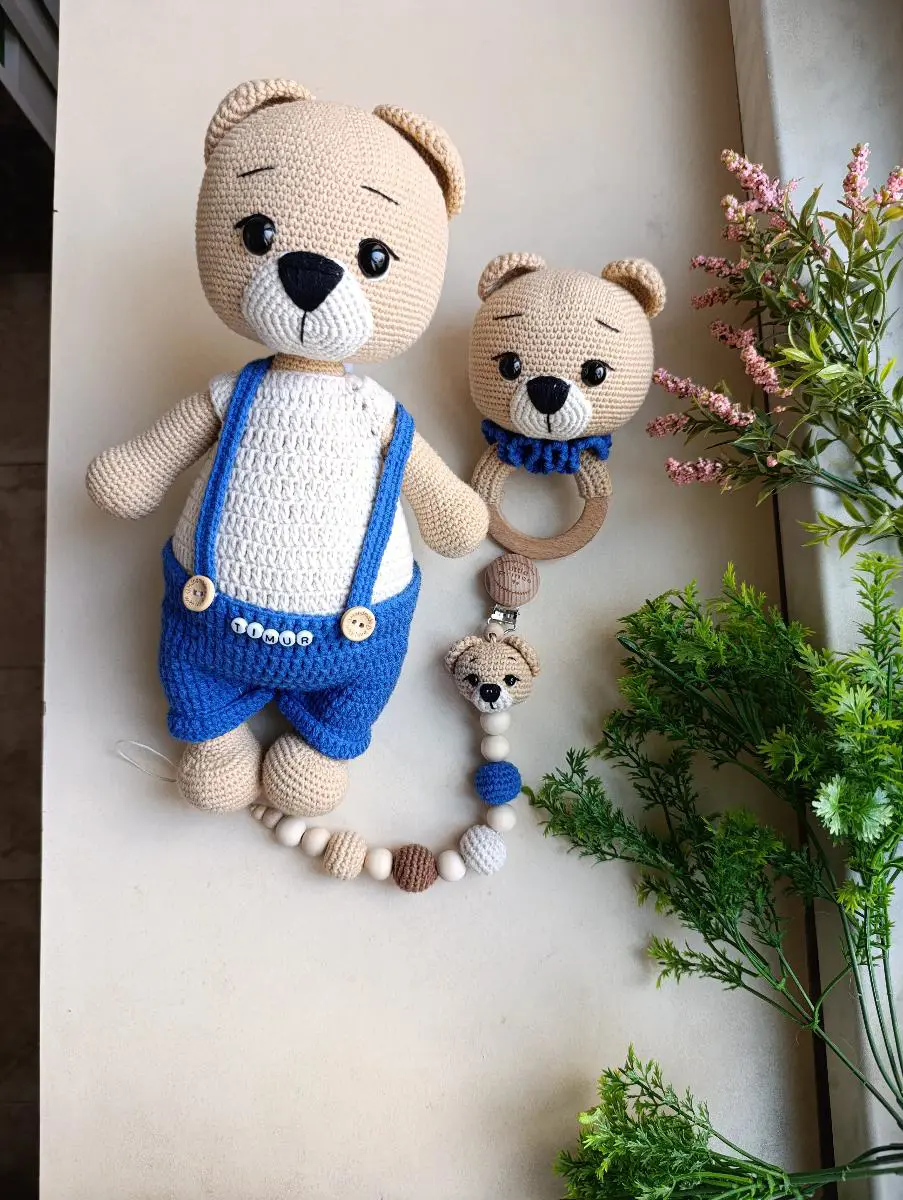 Körpələr üçün xüsusi hazırlanmış 3-lü əl işi dəst 🧸 ✔ Ayı oyuncaq – yumşaq və sevimli dost ✔ Diş qaşıyıcı – diş çıxarma dövrü üçün rahatlıq ✔ Əmzik asqısı – praktik və rahat istifadə Hamısı təhlükəsiz materiallardan hazırlanır və sevgi ilə toxunur 🤍 Yüksək keyfiyyətli pambıq saplardan hazırlanır, körpə dərisi üçün uyğundur 🌿 ✨ İstəyə uyğun olaraq üzərinə ad yazıla bilər 🎁 Yeni doğulanlar üçün mükəmməl hədiyyədir