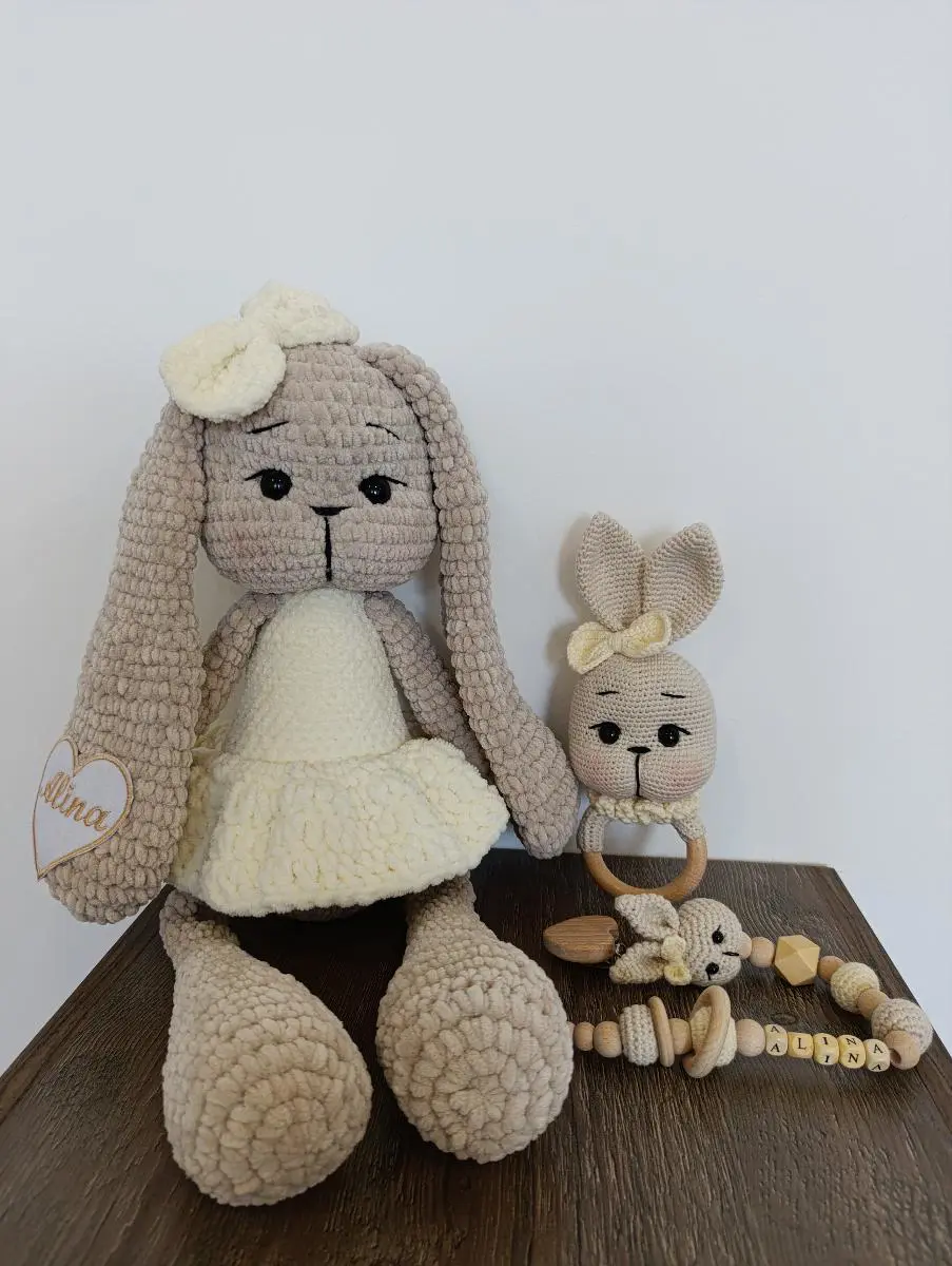 Yeni doğulan körpələr üçün mükəmməl hədiyyə dəsti! ✨ Dəstəyə daxildir: 🐰 Yumşaq toxunma oyuncaq dovşan 🍼 Təhlükəsiz diş qaşıyıcı 🎀 Əmizik zənciri (əl işidir, körpənizin adını da əlavə edə bilərik!) 🎁 Körpələr üçün həm şirin, həm də praktik bir hədiyyə axtarırsınızsa, bu dəst tam sizlikdir. Müxtəlif ölçülərdə toxunur. Dovşanın hündürlüyü 45-50 sm - 50 AZN 35-40 sm arası qiyməti 45 AZN 25-30 sm arası olarsa dəst şəklində 37 AZN Tək tək də hazırlamaq mümkündür.